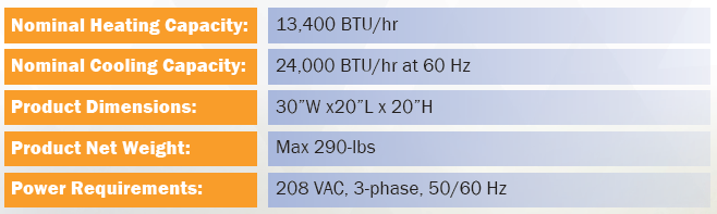 Horizontal Compact, Lightweight, Self-contained Unit to Provide High Capacity Heat-cool Environmental Control, Wall or Floor Mounted, Primarily for Use with Mobile Tactical Electronic Shelters This Unit Will Control the Temperature from 0 Degree F to 130 Degree F in Ambient Temperatures of 0 to 125 Degree F.