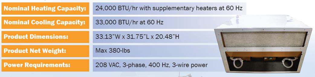 Horizontal Compact, Lightweight, Self-contained Unit to Provide High Capacity Heat-cool Environmental Control, Wall or Floor Mounted, Primarily for Use with Ship to Shore Conveyance Vehicles (Air Cushion Lcac)This Unit Will Control the Temperature from -30 Degree F to 125 Degree F in Ambient Temperatures of -30 to 130 Degree F.